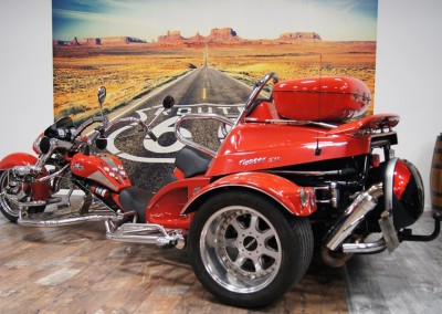 Der Fighter ist das größte BOOM Trike und wird von Kennern der Szene auch als „König der Trikes“ bezeichnet. Ihn gibt es ausschließlich mit der Topmotorisierung, dem 2,0l Automatikmotor. Sein modernes Design verzichtet bewusst auf einen Kofferraum, was ihn sehr elegant wirken lässt und von den meisten angebotenen Trikes wohltuend abhebt. Bedingt durch sein Gewicht und Länge bietet der Fighter einen sehr hohen Fahrkomfort und eine legendäre Straßenlage.