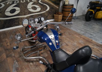 Ford Zetec Motor mit 92kW (125 PS); fabrikneues Getriebe; Auspuff aus poliertem Edelstahl; Bereifung vorne: 200/50-17 auf Alufelge Lochdesign, SLC verchromt; Bereifung hinten 295/50-15 auf Alufelge Lochdesign, SLC verchromt; Beinschutz- und Gepäckaufnahmebügel VA, 60mm; Komfortgabel VA, 60mm; Scheibenbremse vorn und hinten; Komfortsitze; Kofferraumbeleuchtung; u.v.m.!