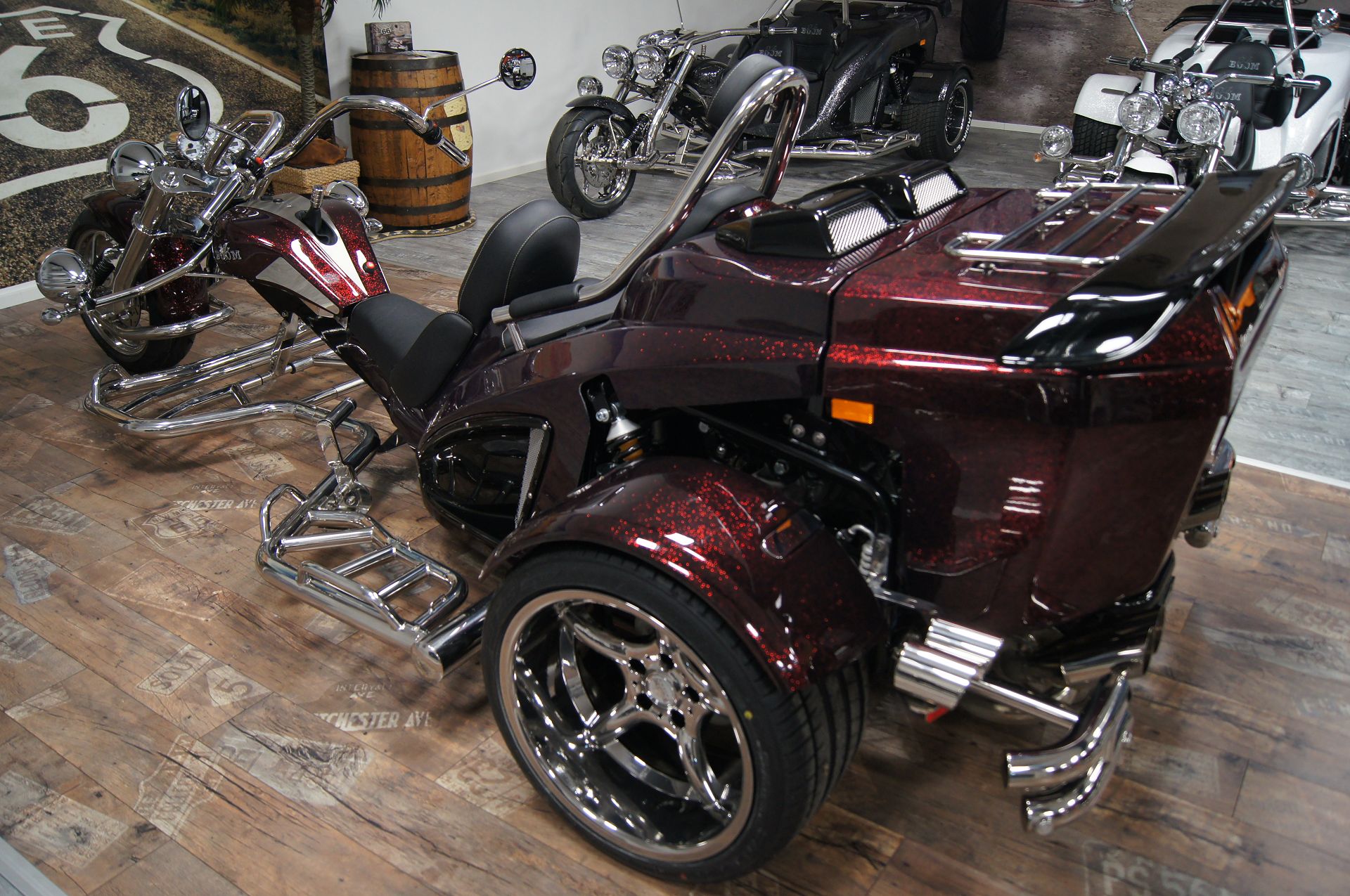 - Hinterräder 295/30-18 auf 11×18 Alufelgen im Shark Design, SLC verchromt;
