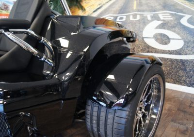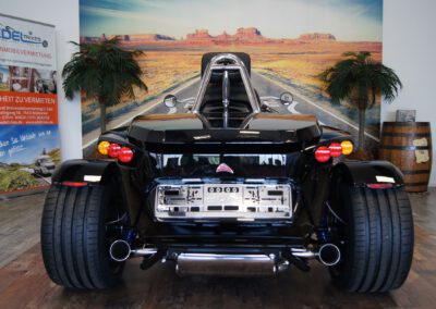 - PUR3 – Bereifung vorne 200/50-17 auf Alu Starfelge 5×17 und Bereifung hinten, 295/35-18 auf Alu Starfelge 11×18 SLC verchromt;