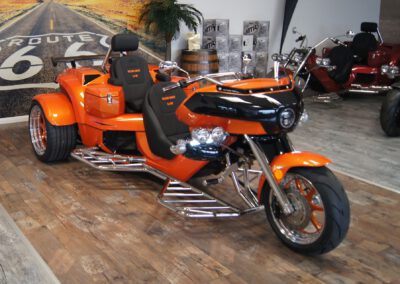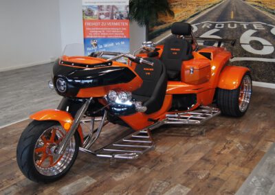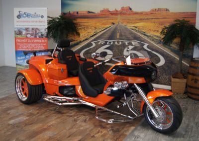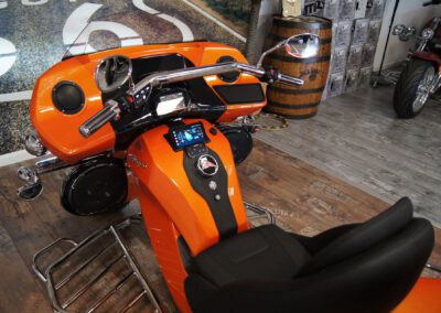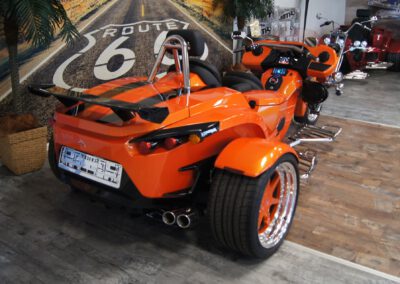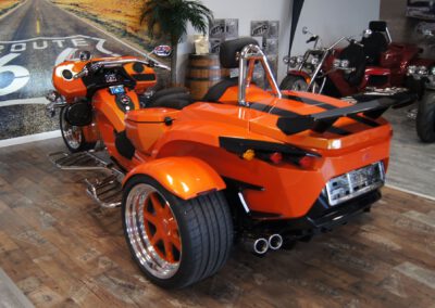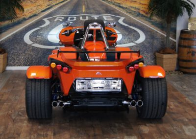 - Bereifung vorne 200/50-17 auf 3-teiliger Alufelge Style hochglanzpoliert und CNC gefräst 5,5×17 und Bereifung hinten 305/30-19 auf 3-teiliger Alufelge Style hochglanzpoliert und CNC gefräst 11Jx19;