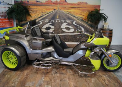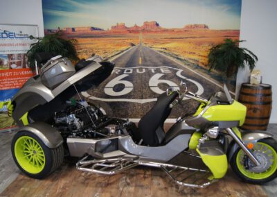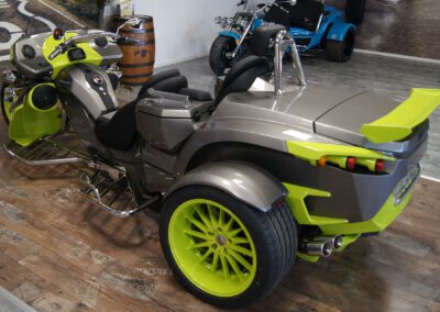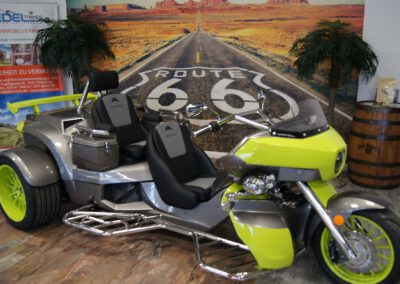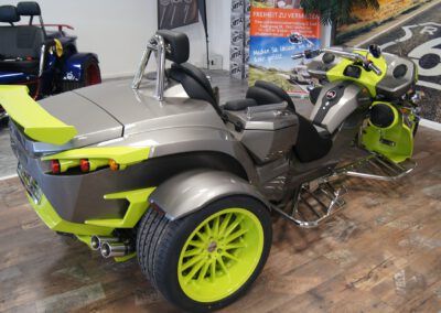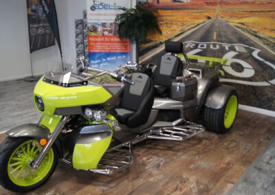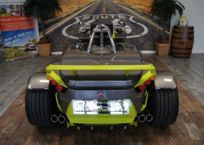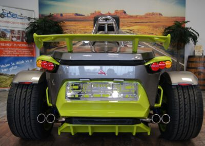 - Bereifung vorne 200/50-17 auf Felge 5×17 und Bereifung hinten 295/35-18 auf Felge 11Jx18 lackiert in Kontrastfarbe;