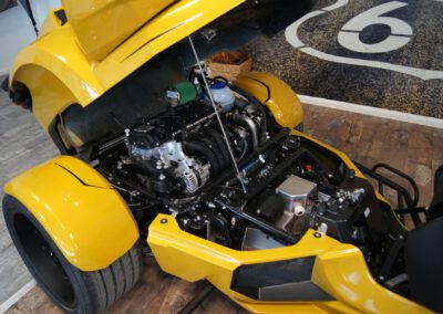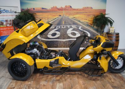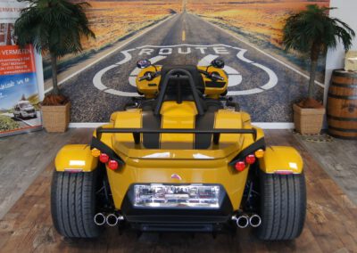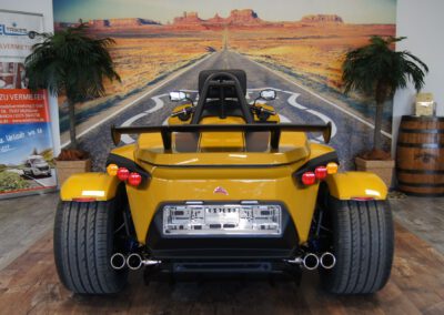 - Bereifung vorne 200/50-17 auf Felge 5×17 und Bereifung hinten 295/35-18 auf Felge 11Jx18 lackiert in Kontrastfarbe;