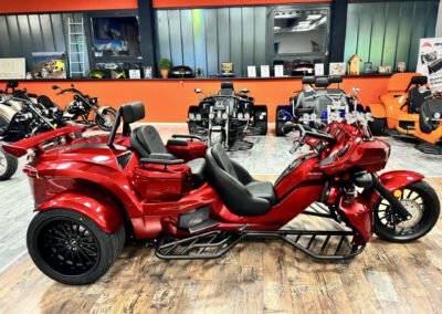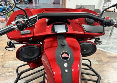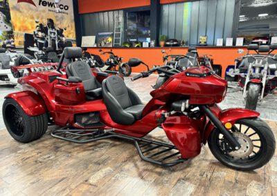 - Sidecases (2x Seitenkoffer abschließbar) in Hauptfarbe – Deep Red to Black;