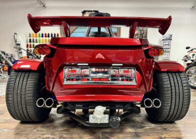 - Bereifung vorne 200/50-17 auf Felge 5×17 und Bereifung hinten 295/35-18 auf Felge 11Jx18 lackiert in Kontrastfarbe – Schwarz matt;