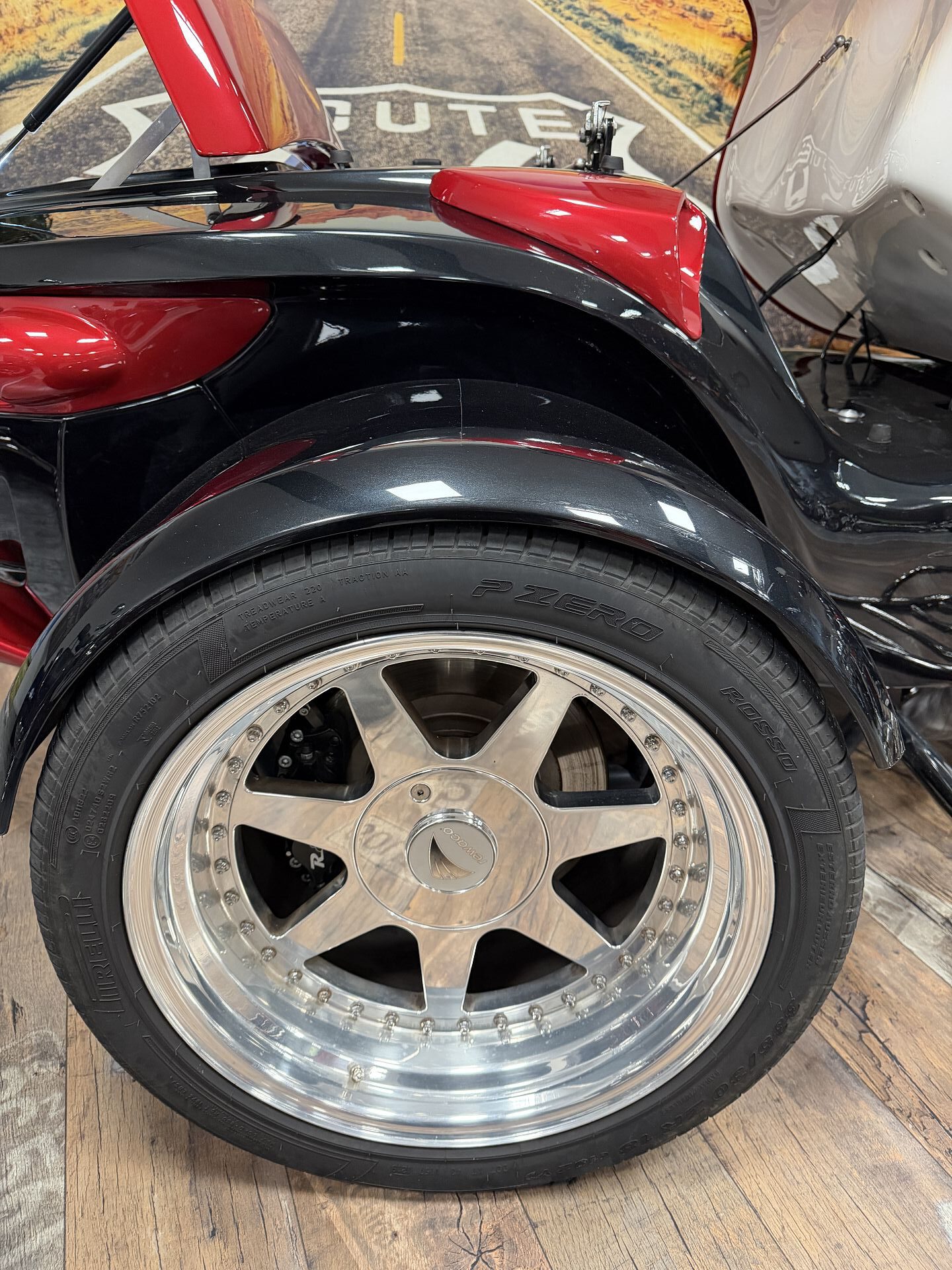 - Bereifung vorne 200/50-17 und Bereifung hinten 295/35-18 auf 3-teiliger Alufelge „Style“;