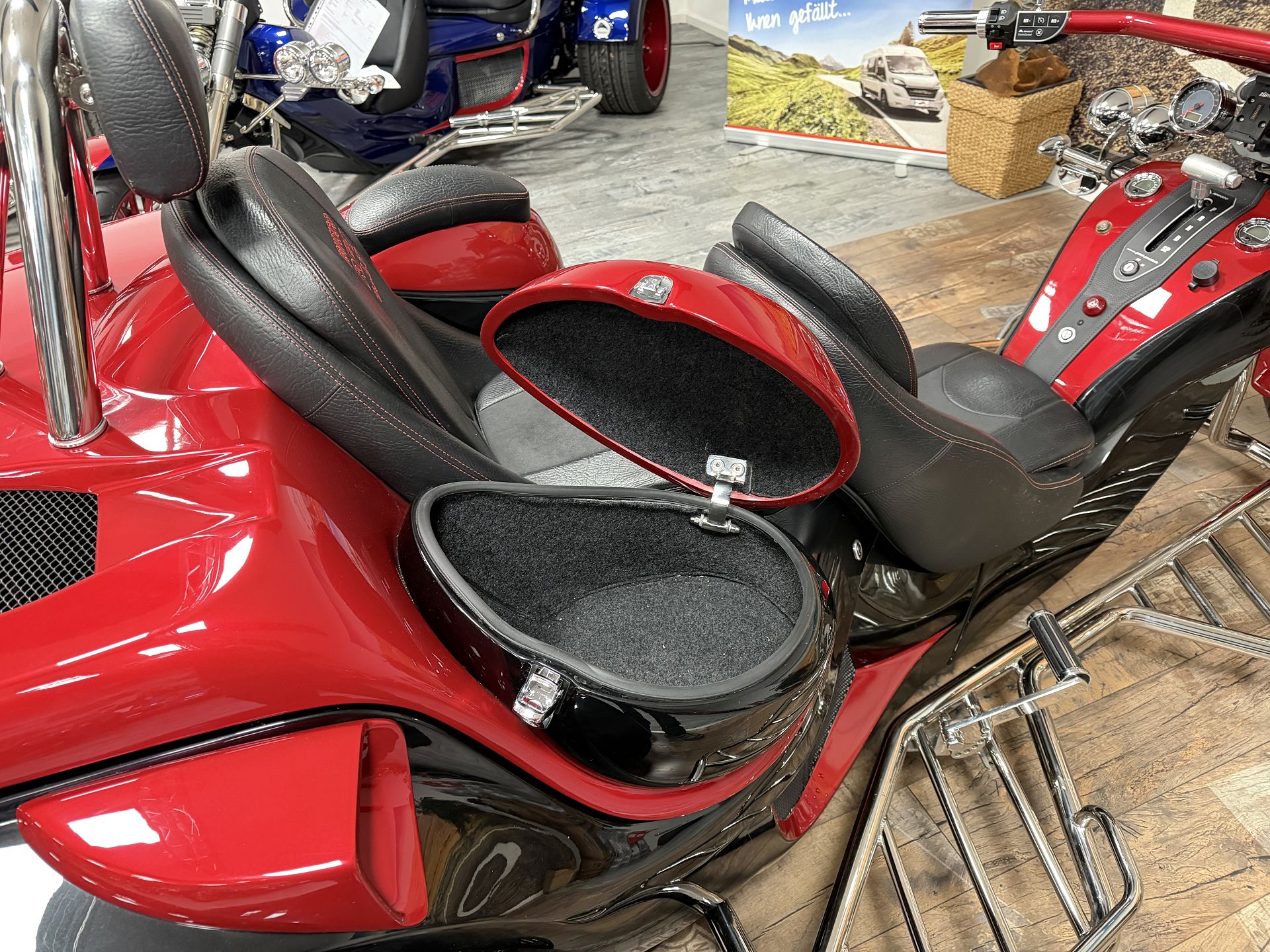 Der Luxury Tourer. Der RF1 LT punktet besonders bei ambitionierten Tourenfahrern durch ein vielseitiges Platzangebot, das sportlich-komfortable RF1-Fahrwerk und dann mit geballten 177 PS veredelt. Typisch für den LT-2 sind die beiden praktischen Helmkoffer.