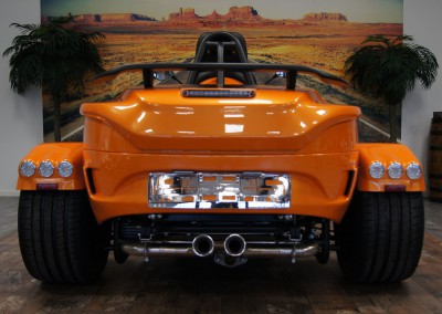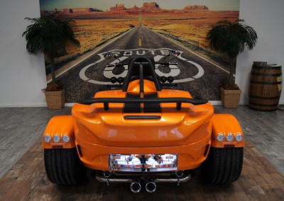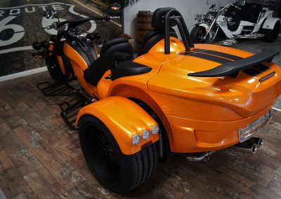 - Bereifung vorne 200/50-17 auf Alu Starfelge 5×17 und Bereifung hinten 295/35-18 auf Alu Starfelge 11×18 in Schwarz;