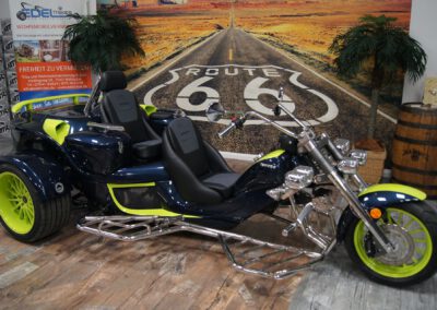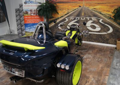 Der Sports Tourer. Der RF1-ST2 überzeugt gerade Trike-Einsteiger und Umsteiger zum Sprung in die RF1-Klasse. Serienmäßig ausgestattet mit dem großem Tourback-Kofferraum ermöglicht er Trikespaß für jedes Budget!